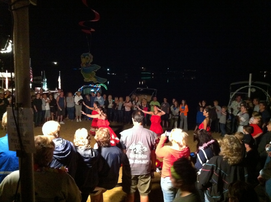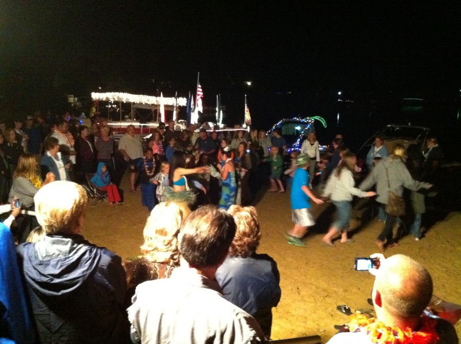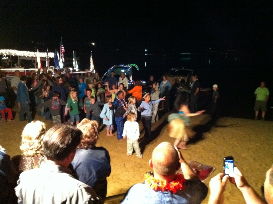 We went to Venetian Night here on our lake where they had a Luau with real Hawaiian Hula dancers and fireworks, live band, and boat lighting contest....SEE...